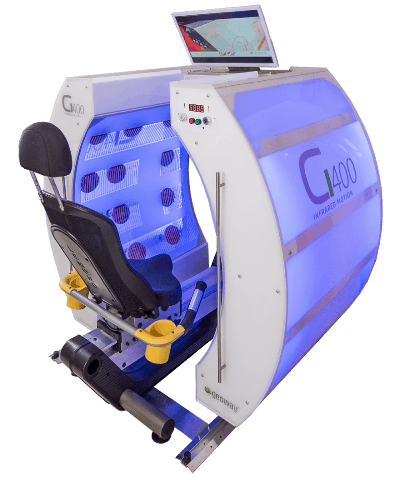 Der Geoway G400 ist ein Wellness- und Trainingssystem, das Bewegung mit Infrarot- und Lichttherapie kombiniert.